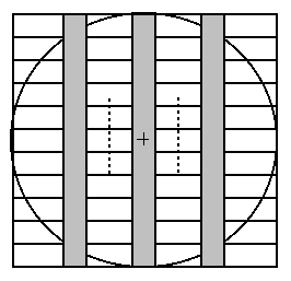 With your center marked, layout seven sticks at right angles to the first ones as spacers and glue the outer two into place. Leave the center one off for now since we'll need to do some work on that one.