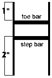 Now securely glue three of the 2 inch long pieces side by side to form a piece that's 1/8 thick and just under a hair of being 1/4 inch wide and 2 inches long. That will be the "toe bar"....the heaviest black line just rearward of the marked 1 inch you measured. Do the same step again to make the "step bar".